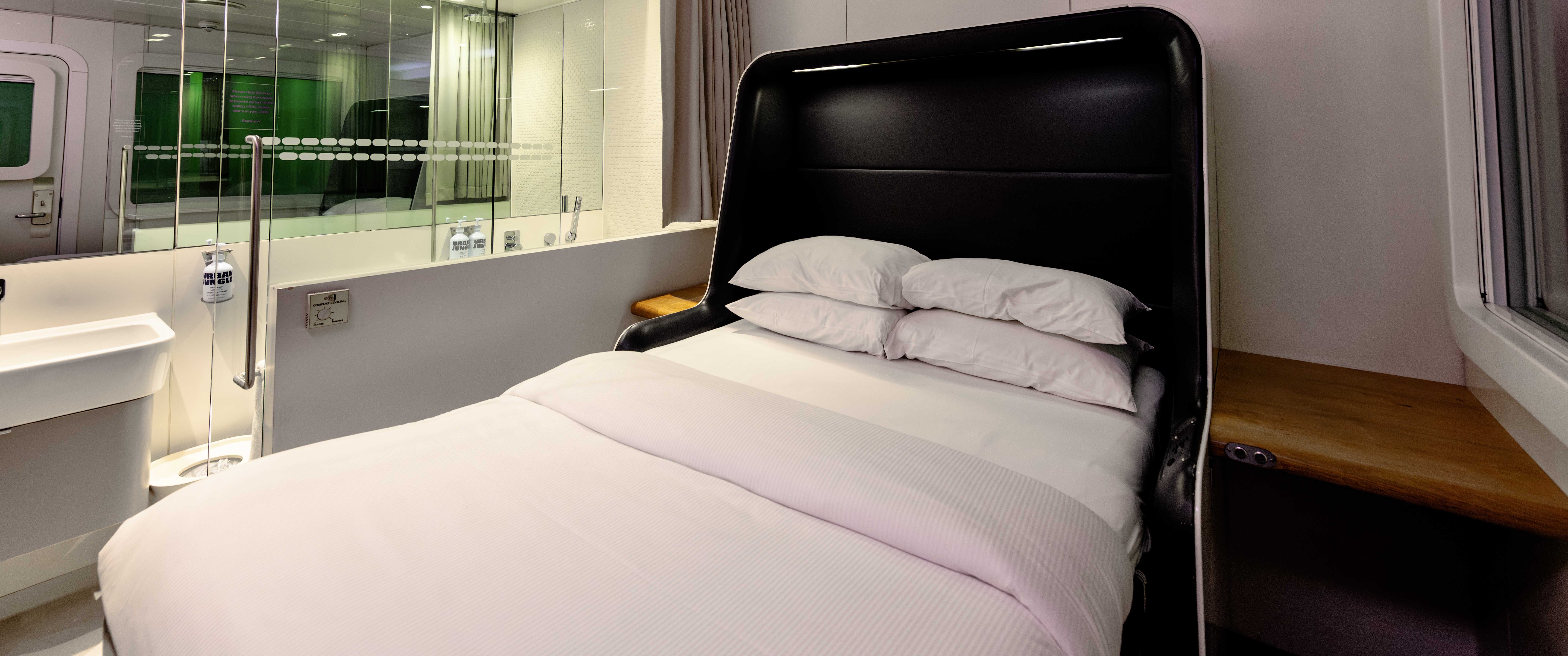 Cleverly designed to maximise available space, our cabins have everything you need and nothing you don't, including an adjustable SmartBed™, a smart TV, a pull-out workstation and super-fast WiFi, as well as refreshing rain shower and Urban Jungle toiletries. All cabins are 'blackout' cabins, so you can catch up on sleep whatever the time of day.