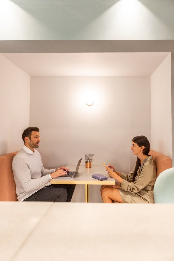 Our multi-purpose public area is as flexible as life in the digital age. Revolve is a welcoming space where you can catch up on emails or meet up with colleagues; grab a bite to eat or while away an evening with friends. Think of it as easy-come, easy-go hospitality, with charging points and free WiFi; fun, fresh, playlists and affordable food and drinks.