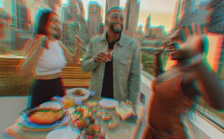 Bar and restaurant with skyline views.