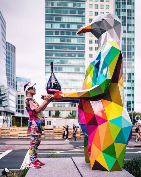 The bright, pop surrealist pieces, commissioned by WS Development, explore the tales of life and co-existence, and each piece focuses on both domestic and wild animals. “I aim to create vibrant places that are filled with colour and positivity, helping and hoping to change the lives of people,” Okuda said. “I want people to stop looking at the pavement and start looking up and around.”