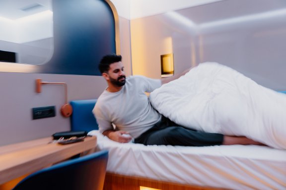 Need a break between flights at Istanbul Airport? Sleep Cabins by YOTELAIR offer a private retreat to rest, refresh, and reset, bookable by the hour. Each sleek, modern cabin features a cozy bed, a smart TV, and a functional desk, with access to shared showers and bathrooms. Conveniently located across from the IGA Lounge entrance, just follow the signs to YOTELAIR and take the escalator up. Your perfect layover escape awaits.