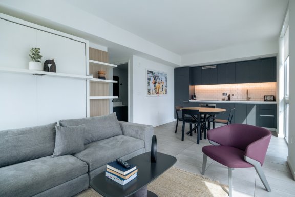 Your PAD is the epitome of efficiency, with custom European kitchen and bath cabinetry with stone finishes, contemporary flooring and beautifully made furniture and that transforms to do everything you need. We have carefully cultivated floorplans with integrated living and dining areas so that every inch works for a smarter stay.