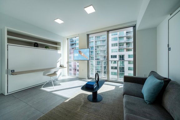 Our first-ever joint hotel and pad in the world, YOTEL Miami consists of cleverly-designed rooms while YOTELPAD Miami, situated right above the hotel, features sleek, modern condominiums (we like to call them pads). Rooms and pads are connected through spacious shared spaces and communal areas.