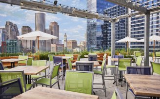 Wine & dine at our hotel rooftop Deck 12 in the heart of the buzzy Boston Seaport.