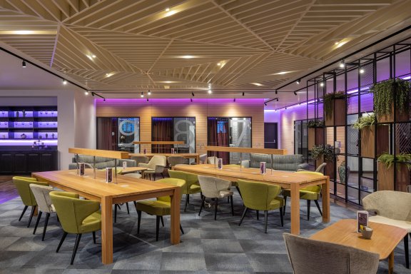 В отеле YOTEL в аэропорту Стамбула (зона общего доступа) мы создали универсальные пространства для переговоров, корпоративных мероприятий, тимбилдинга, мозговых штурмов, образовательных поездок и совместной работы.