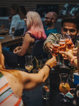 Packages include a three-course festive buffet, fizz on arrival, half a bottle of wine per guest, and a live DJ to keep the party moving.